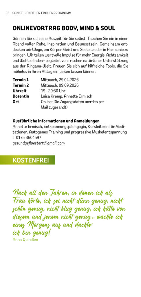 Onlinevortrag Body, Mind & Soul Kostenfrei
